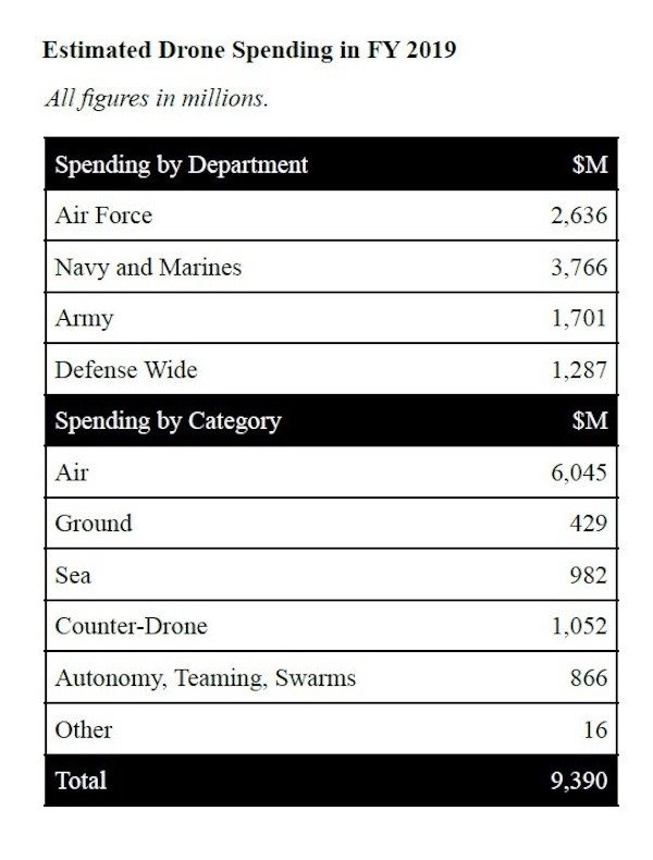 The DoD plans to spend a total of $9.4 billion on UAV technology in 2019.