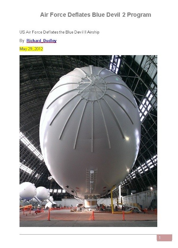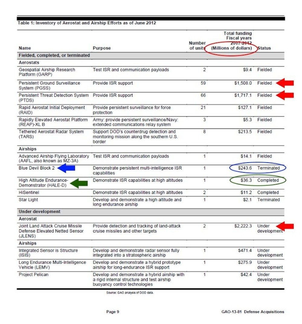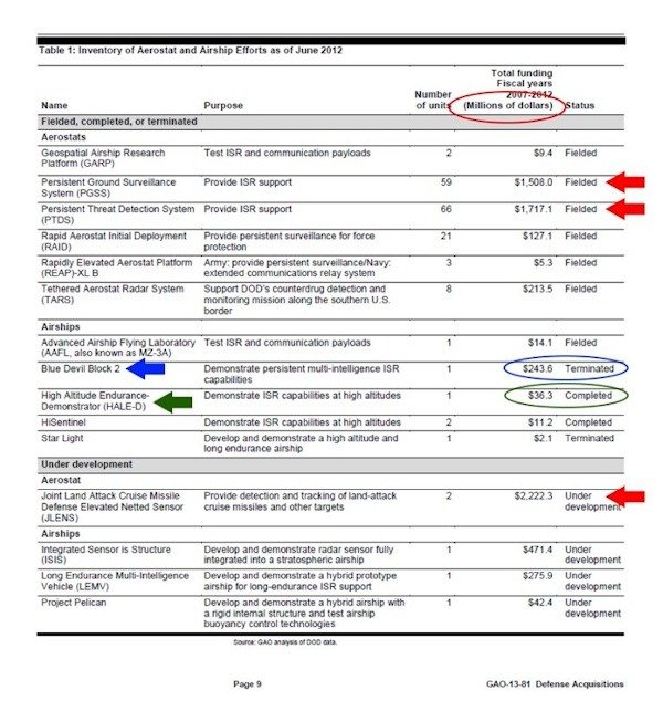 It outlines the Government’s investment in airship and aerostat technology between 2007 and 2012.