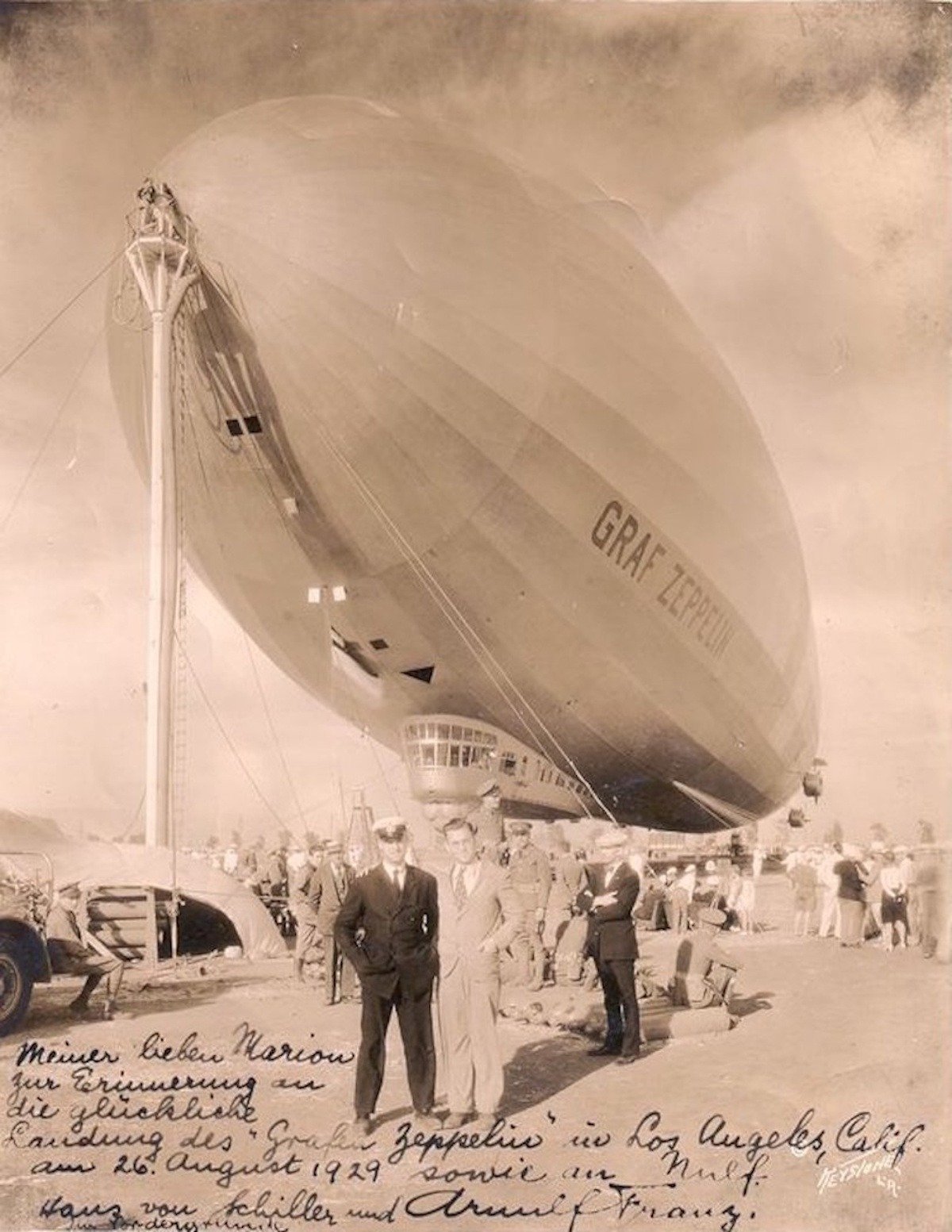 It commemorated the Graf Zeppelin’s safe landing in Los Angeles, California, on August 26, 1929, during the completion of its around-the-world expedition.