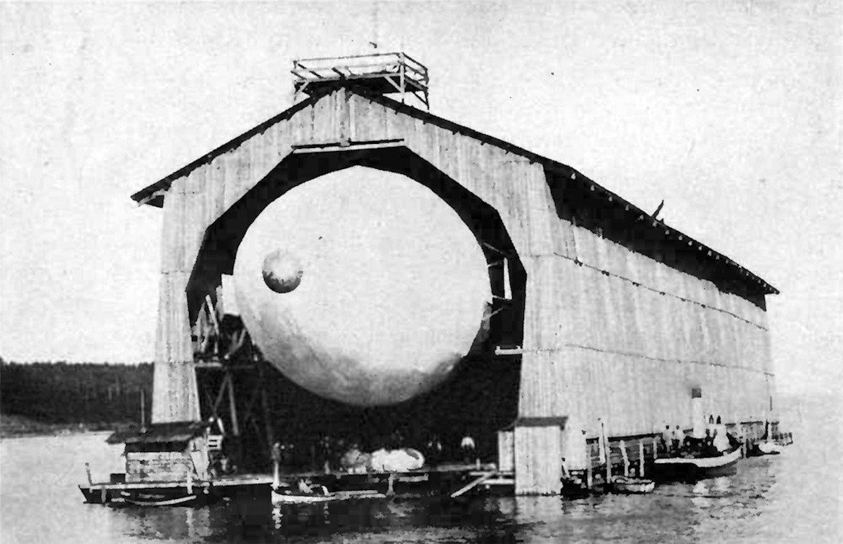 The Count used a floating shed so that it could be aligned with the wind before launching or hangaring the airship.